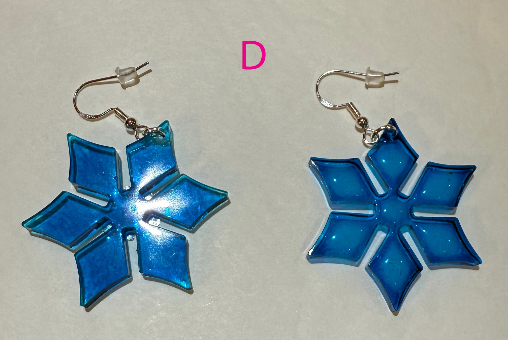 Our Snowflake resin dangling earrings are made with high quality epoxy resin. No two are ever alike! Each earring is unique in its own way!